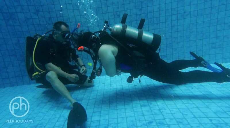 Then, one day, we decided to set a day to practice in the swimming pool to review and improve whatever we need to together. As we know, once we are in the ocean with other divers, we don’t really have that time luxury to practice. We get into the real thing right away most of the time. It is our own responsibility to get ourselves prepared for our next diving, I think. And the more we practice, the more we can do it better and correctly which as a result, the more we will be able to enjoy the dives.