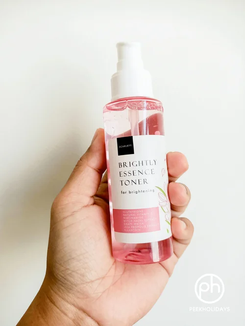 Another product that we usually use after the facial wash is face toner. Scarlett Whitening also comes out with Brightly Essence Toner that is recommended to use after the Scarlett Brightening Facial Wash I mentioned earlier. It also comes in a light pink 100 ml translucent bottle.