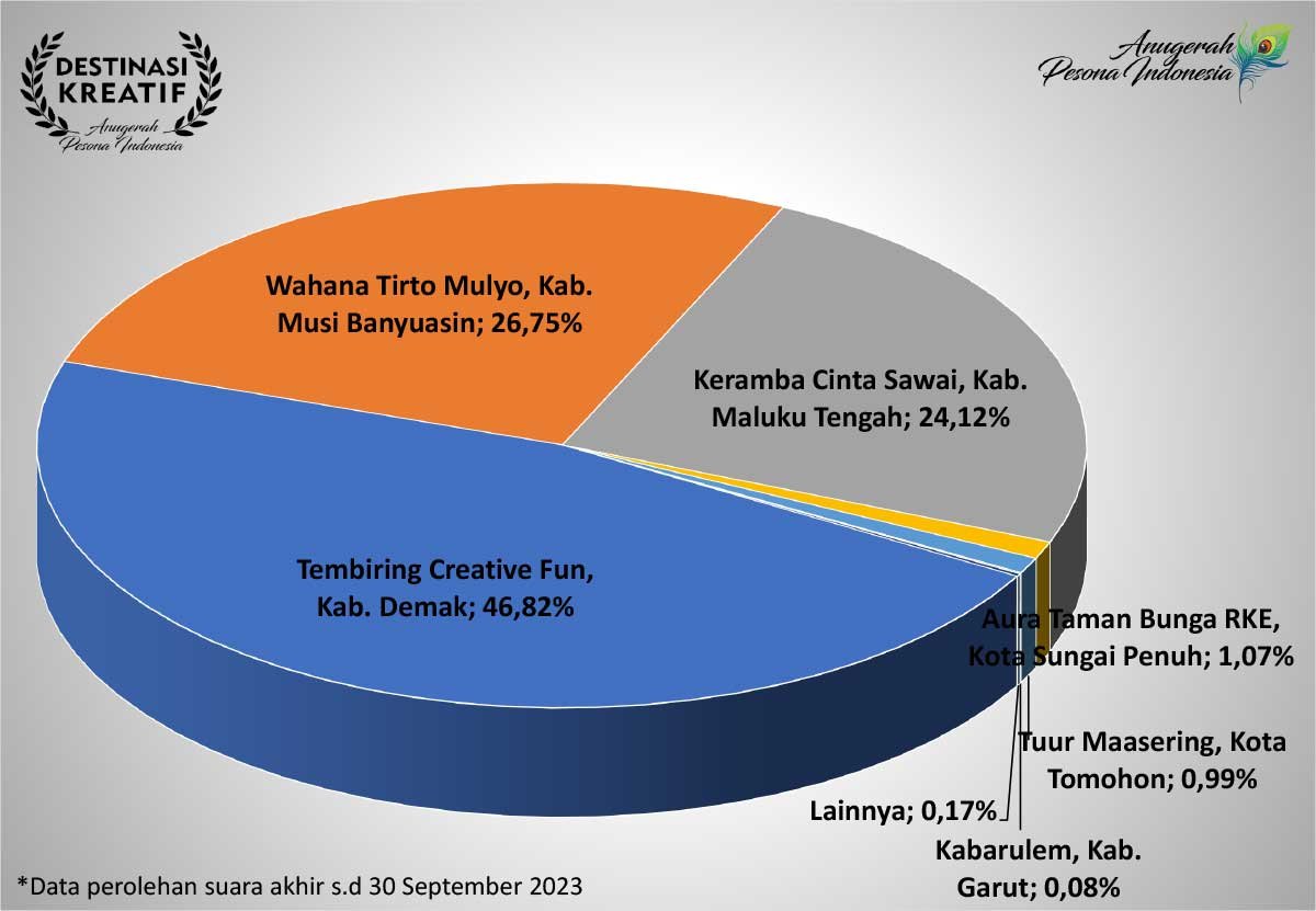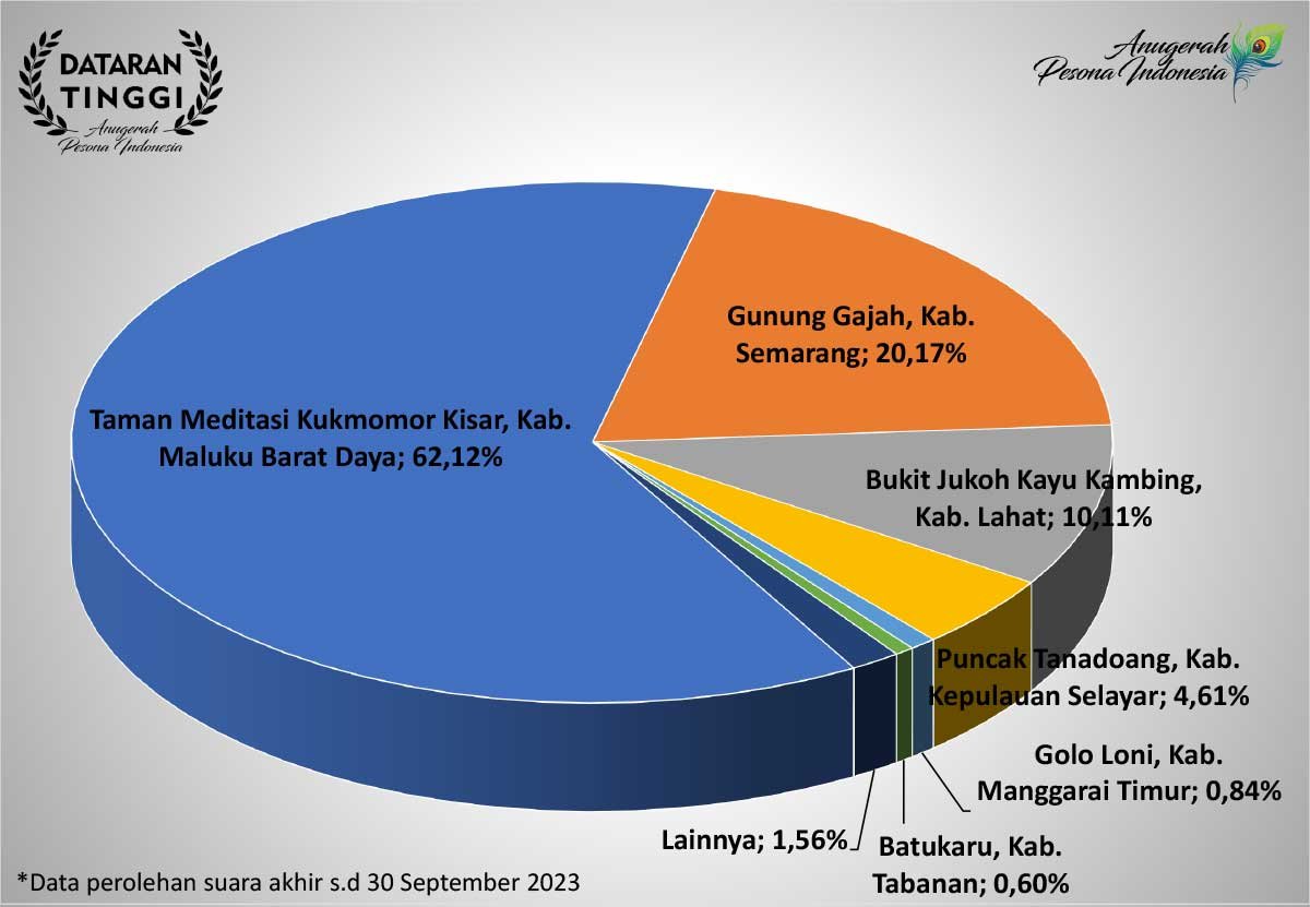 Mari kita sama-sama liat perkembangan dari API AWARDS 2023. Daerah-daerah manakah yang masuk nominasi dan sejauh ini sudah berapa jumlah suara yang terkumpul sejak voting dimulai pada awal Juni 2023. Hanya nominasi yang masuk 6 besar yang ditampilkan hasilnya. Hasil voting bisa berubah drastis tanpa diduga. Jadi jangan lelah dan putus asa dulu bagi nominasi yang ada di posisi 6 besar dan yang belum. 🙂