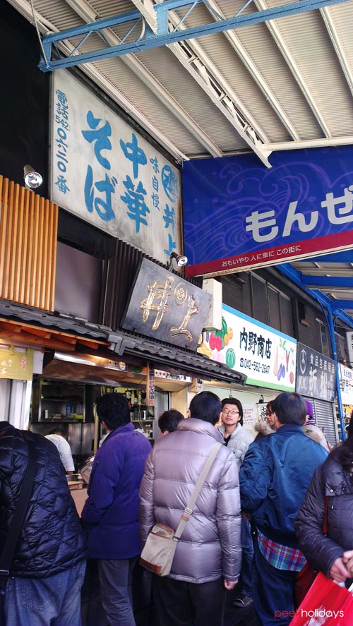 Tsukiji market is famous for its seafood. So, must-try dish certainly is something has to do with seafood. As usual, when we go to a country where we can’t speak the language, there is when your finger point is very useful! 😀 I just pointed on the picture of the food that I want.