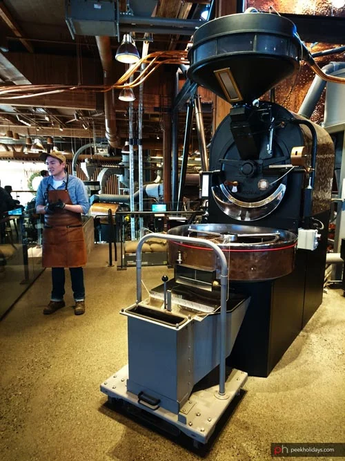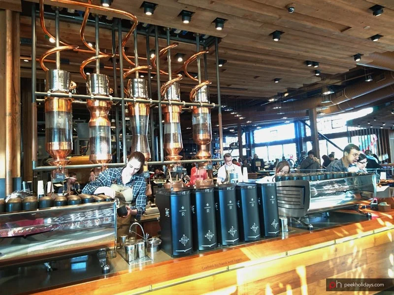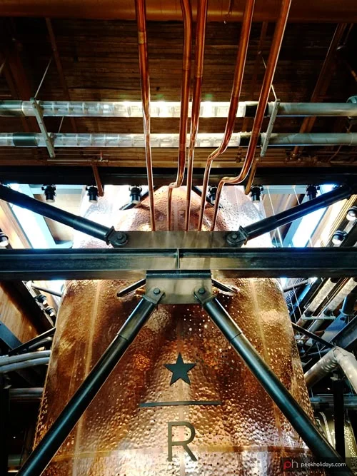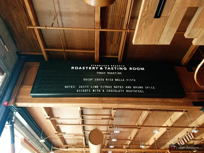 We reached there around afternoon. The building has the big letter ‘R’ and the star sign on the top of it. We could also see the hand-carved Starbucks icon, the Siren, on the facade. It was made specially from copper for the Roastery. Until that moment, I still had no idea what that place was all about. I thought it would only be another Starbucks outlet but bigger one or perhaps a museum about Starbucks. But I was totally wrong. I stepped in and well, if I were to describe that place in one sentence, it would be: