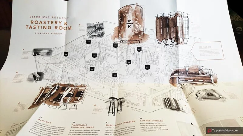 Like other Starbucks outlets, there is a seating area for us to enjoy our coffee and mingle with our friends. But not only that, at Starbucks Reserve Roastery and Tasting Room, there is a store corner where all the dazzling coffee makers machines, tools and things related to coffee are sold. And also a wood-fired artisanal pizza restaurant, Serious Pie, which operating in the adjoining space. There is also a library corner wherefrom the mezzanine, we could see the entire roasting operation at a glance.
