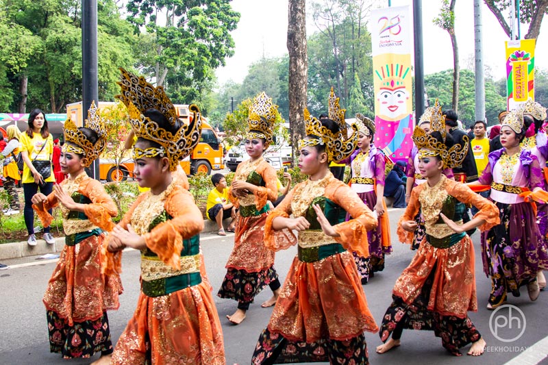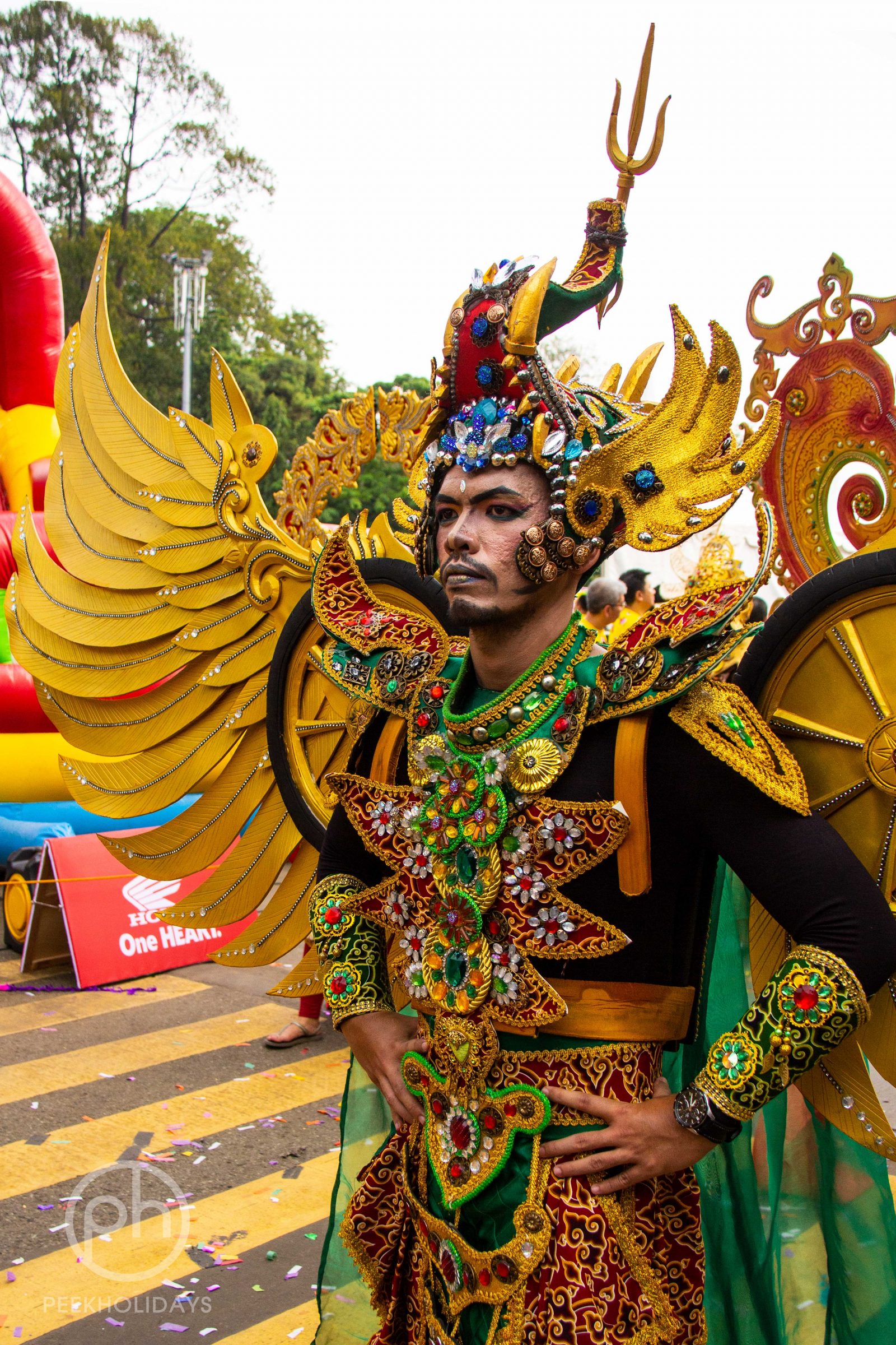 That Sunday morning was unusually crowded. The bus dropping the passengers at the bus shelter and cars lining up entering the nearest parking lot to Gelora Bung Karno. While not far in at the gate 4, people were waiting for their turn to show their beautiful and colourful traditional costumes to the audience that had been standing by with their camera on hand ready to capture the moment.