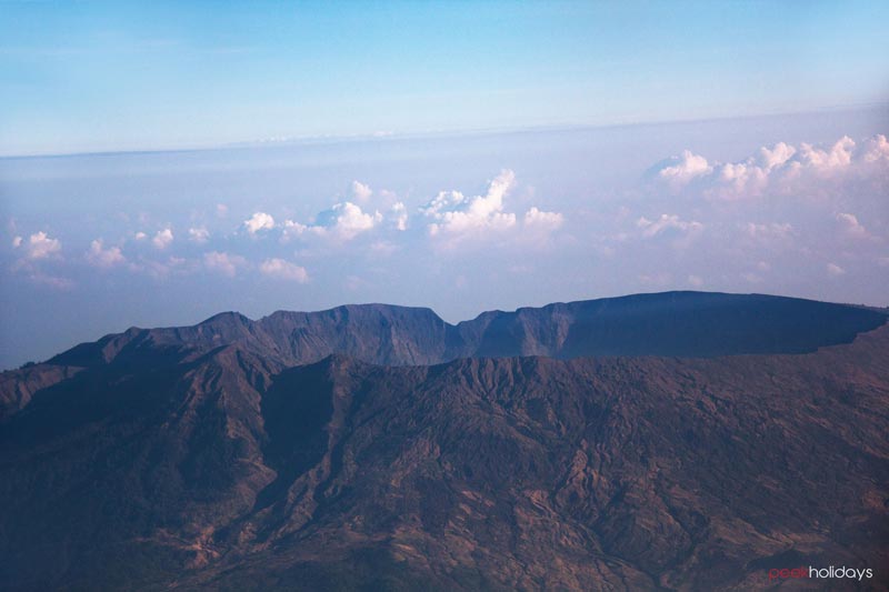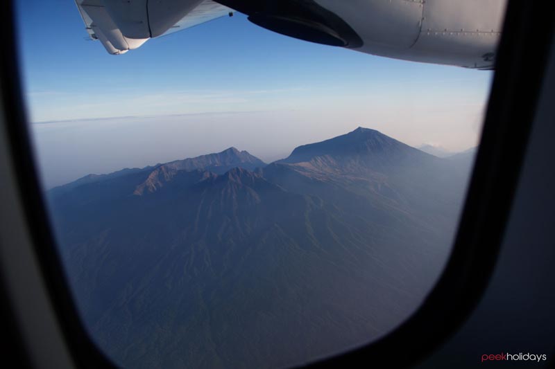The morning sunrise colors beautified the whole scene. I don’t know the name of the mountains but likely one of those mountains is either Mount Rinjani or Mount Tambora as we seemed to fly over Lombok, Mojo, and Sumbawa island. And Yes, you have probably known that most of the volcanoes in Indonesia are still active.