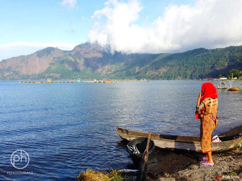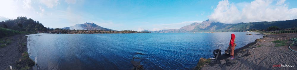 Once we reached the end of the path, we will see the unblock view of Mount Batur with the lake. And while we were enjoying the view, there was a man approaching us and asking if we want to cross over to the other side of the lake. When I asked him what we can find there. He said that there’s a cemetery. Well, I heard that the cemetery is quite unique. But well…I chose to skip that.