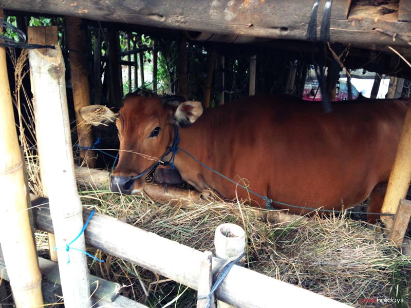 We can reach Lake Batur by crossing the road and walking into the village. By the way, see what I found! A cow! It belongs to one of the villagers. :)There is a path where we can cut through to a plantation and Lake Batur is just located near the end of the plantation.