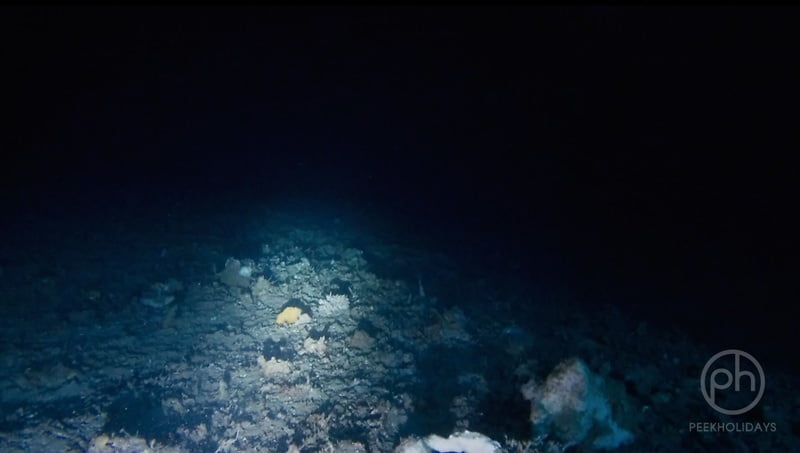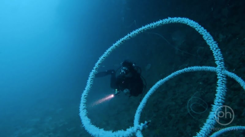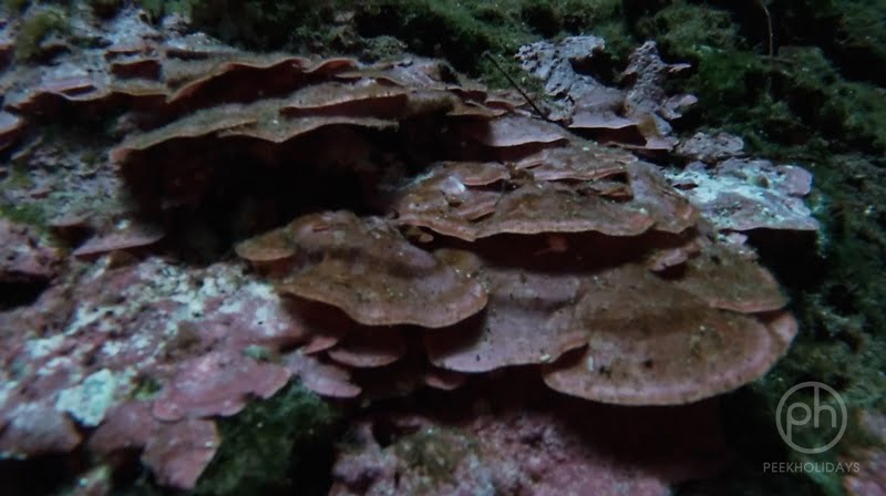 The contour and texture of the cave walls are the same as what we normally see in any other caves, although here we can see some corals have grown covering the wall. The visibility inside the cave was surprisingly so good. So, although it was dark, I didn’t have any difficulties seeing what was ahead of me with my dive torch.