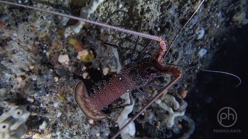 The entrance to the cave was rather big. Probably, it was big enough for three to four divers to go in at once. There weren’t any other divers except us. Without our dive torches, we totally couldn’t see anything. We spotted one lobster hanging on the wall of the cave. Ipin said that usually, we could see more lobsters hanging around the entrance, and sometimes, we could also see some sharks. However, that day wasn’t the day for us to see all those in the cave.