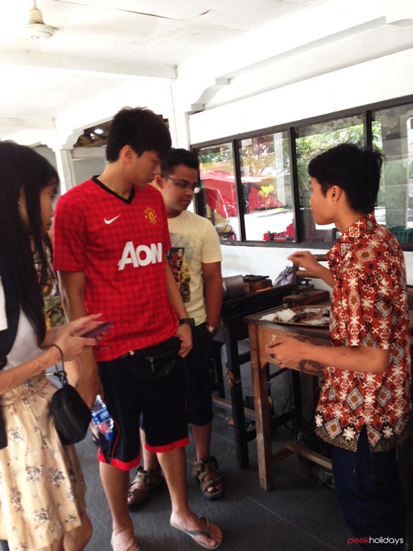 When we reached Celuk Silver, we were given a short introduction on how all the jewellery were made. The staff spoke good English. We were told that only natural colours were used for the jewellery, including the “glue” which used to paste the natural stones on the silver surface was also from fruits and such. All single stone was pasted one by one. And because all are from natural sources without going through any chemical process, so the jewellery won’t look the same as what we normally found in the stores.