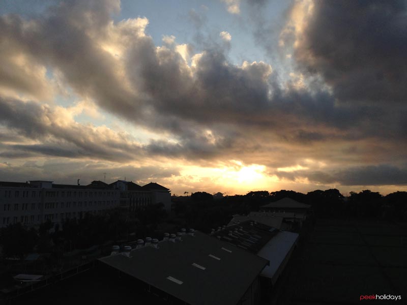 That’s the view from our hotel we stayed, Best Western Premier, at Kuta. Feeling was great. Emily was my roommate and we woke up earlier that morning. We did a little bit exercise before we had our breakfast. The breakfast was served at their rooftop restaurant which personally I like it. 🙂