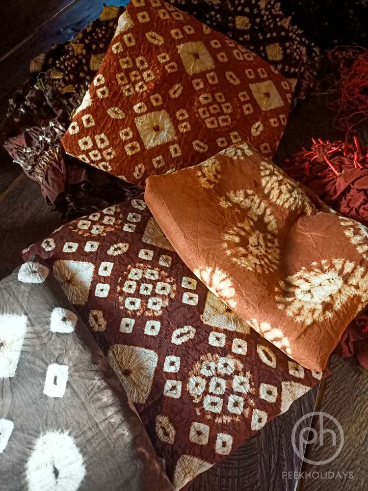 Fabrics dipped in limewater will produce brown color, while black for Tunjung and red for alum. Because all colors come from natural ingredients, the colors produced tend to be darker, not as colorful, and bright as synthetic coloring. After the dyeing process is completed, they will hang it up for air dry without direct sunlight. The method may take days for a complete dry. After drying, they will still need to untie one by one and iron the cloth neat if they prefer. After that, it is ready to use.