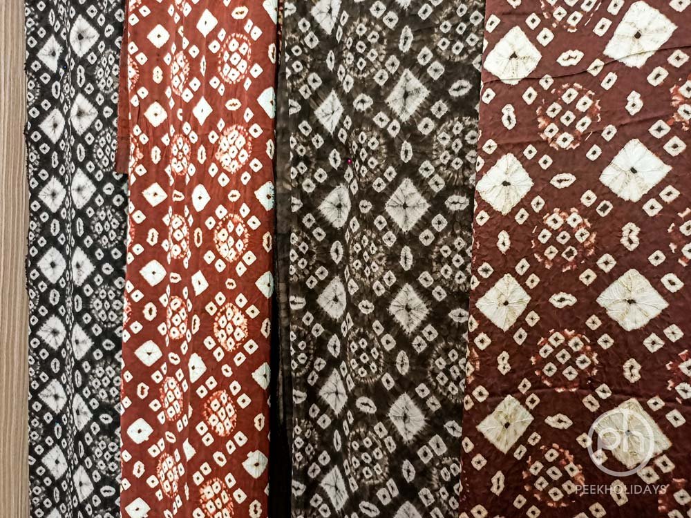Gambier Plant is an essential component in making Gambo. That is how the name of Gambo come about. The extract of the plant is commonly used in cosmetic and pharmaceutical industries, while the mucilage that used to be discarded is now playing a big part in the dyeing process to produce earth-tone color. Unlike the making process of Batik we see elsewhere that use waxing, dyeing, and de-waxing method, the technique used in making Gambo is called “Jumputan” which involves pinching and tying the fabric bit by bit with raffia based on the pattern drawing. The area covered by raffia will remain as white or as the original fabric color during the dyeing process.